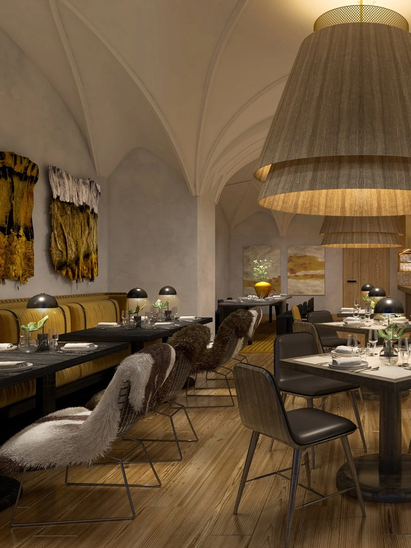 Once home to the Habsburg dynasty, Innsbruck is the capital of Tyrol, set amidst the sharp peaks of the Austrian Alps. The city’s ephemeral rulers left a distinct mark on the city’s architectural and cultural traditions. Our inspiration reflects the symbiosis between profound natural wonder and the excitement of the city, resulting in a warm, contemporary space designed to inspire intimate conversation and connection.